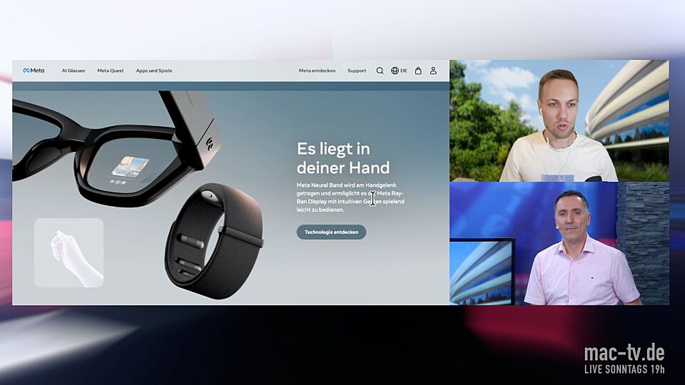 Gedacht war es als Rundschau! Doch die Wahrheit ist, dass wir bei einem einzigen Thema hängen geblieben sind, weil es doch interessanter wurde, als wir zunächst dachten. Meta startet gerade durch mit einer neuen Brille in offenem Design. Dieses Konzept soll endlich den Durchbruch bringen, nachdem Meta und Apple mit den geschlossenen Modellen nie richtig erfolgreich wurden. Die Meta-Brille kostet in den USA 800 Dollar (plus Steuern) und ist somit in Reichweite der wagemutigen Nerds. Kann man sich so ein Produkt auch für Apple vorstellen? Das Design ist noch etwas klobig, aber das scheint die Kundschaft nicht zu stören. Das zeigen auch unsere Votings während der Sendung. Was also kann die Brille? Und was hört man von Apple? Direkt zum Film »