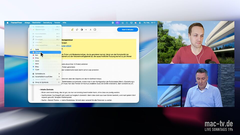 Live-Sendung fast jeden Sonntag um 19 Uhr mit zahlreichen Themen, Live-Chat und Votings. Login ab 18:50 Uhr, Start um 19 Uhr. Wiederholung der Beiträge im Archiv.