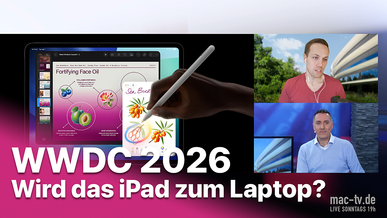 Die WWDC 2026 rückt langsam näher. In den letzten Jahren bekamen das iPad und speziell iPadOS wichtige Verbesserungen, die es tauglicher machen für komplexere Anwendungen und für den Einsatz auf dem Desktop. Dabei gab es einige Fehltritte, etwa der »Stage Manager«, aber insgesamt ist vieles besser und manches sogar richtig gut geworden. Wie viel fehlt also noch, bis das iPad zum echten Laptop-Ersatz werden kann, zusätzlich zu dem, was das iPad immer schon konnte? In der Sendung sammeln wir viele (ja, viele!) Eigenschaften, die das iPad auszeichnen, und viele, bei denen man noch eine Schippe drauflegen müsste. Das gibt uns einen Horizont, was wir von der WWDC 2026 erwarten. Vorausgesetzt, Apple hat dieses Jahr nichts anderes zu tun. Hey, Siri...! (Spielzeit: 38 Minuten.)