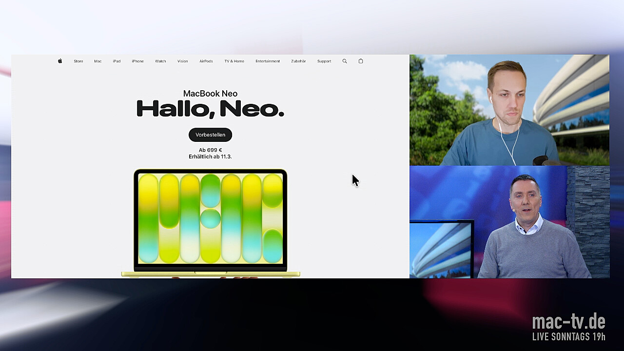 • Special Event – Das neue MacBook Neo • Special Event – Die zwei neuen Studio Displays • Special Event – Neue MacBook Pro und MacBook Air • Special Event – Das neue iPhone 17e (Spielzeit: 172 Minuten.)